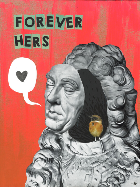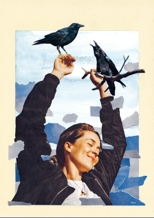 Alexandra Brenner alias blau. ist Collagekünstlerin aus Wien. Ihre Arbeiten bewegen sich zwischen Punk und Poesie – frech, verspielt und kritisch. Mit Schere, Textfragmenten und gezieltem Farbeinsatz erzählt sie visuelle Geschichten über Weltgeschehen und Absurdität, Feminismus, Fantasie und Gesellschaft. Ihre Collagen sind Einladung in Tagträume und Alltagskommentar zugleich – immer mit einer Prise Schmäh.