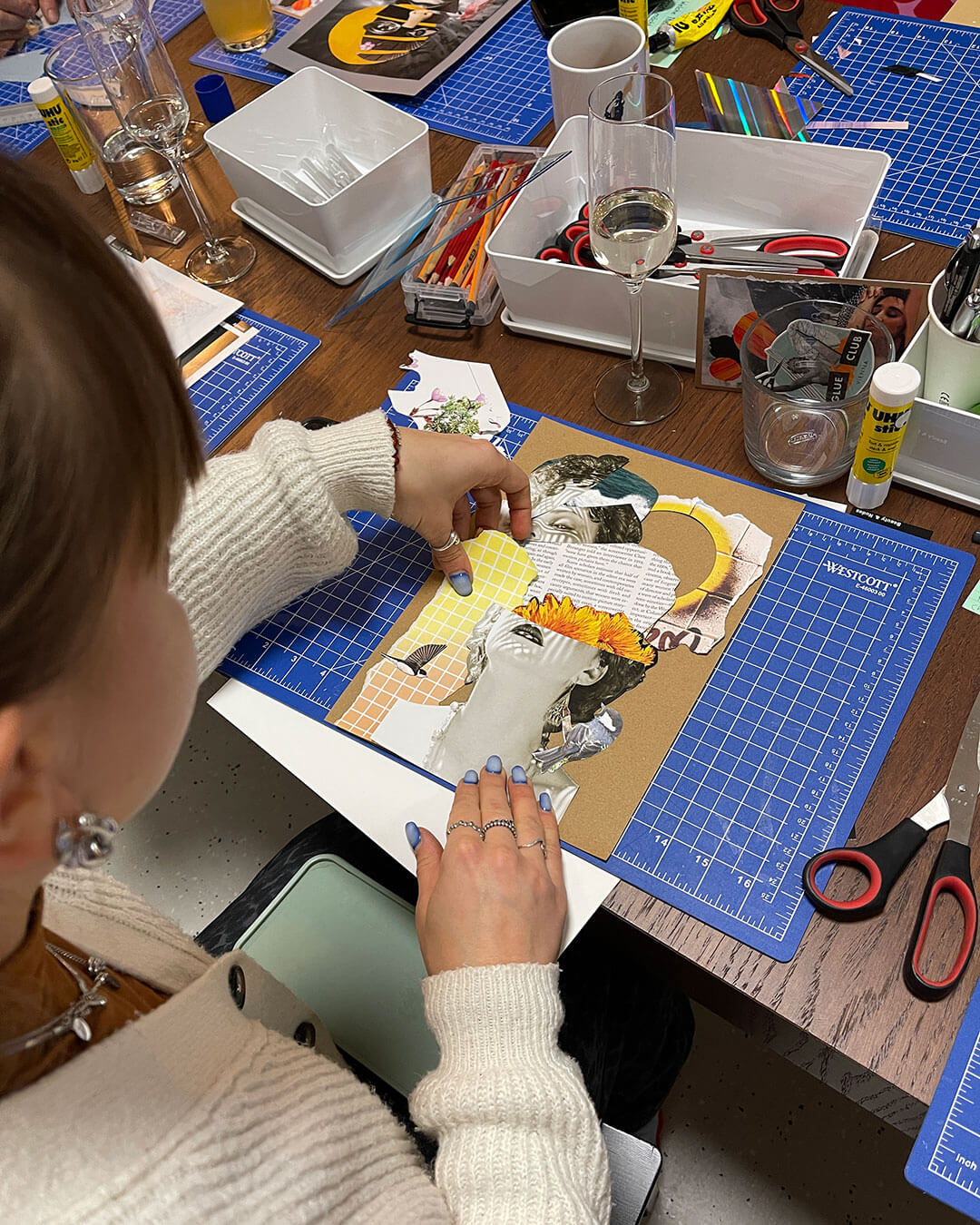 Manchmal braucht’s einfach einen Tisch voller Papier, eine Schere in der Hand – und ein Glaserl Sekt. 🥂