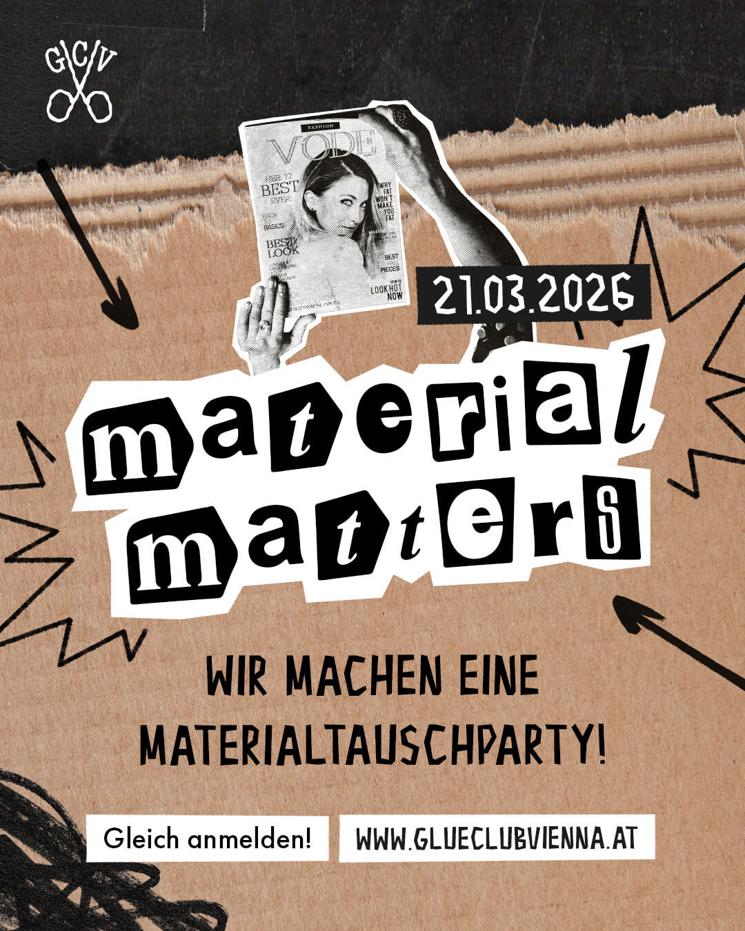 Zusätzlich bringen wir vom Glue Club Vienna einen umfangreichen Fundus an Material, Büchern, Drucken und Supplies ein – ergänzt durch Spenden von div. Kooperationspartner*innen.
